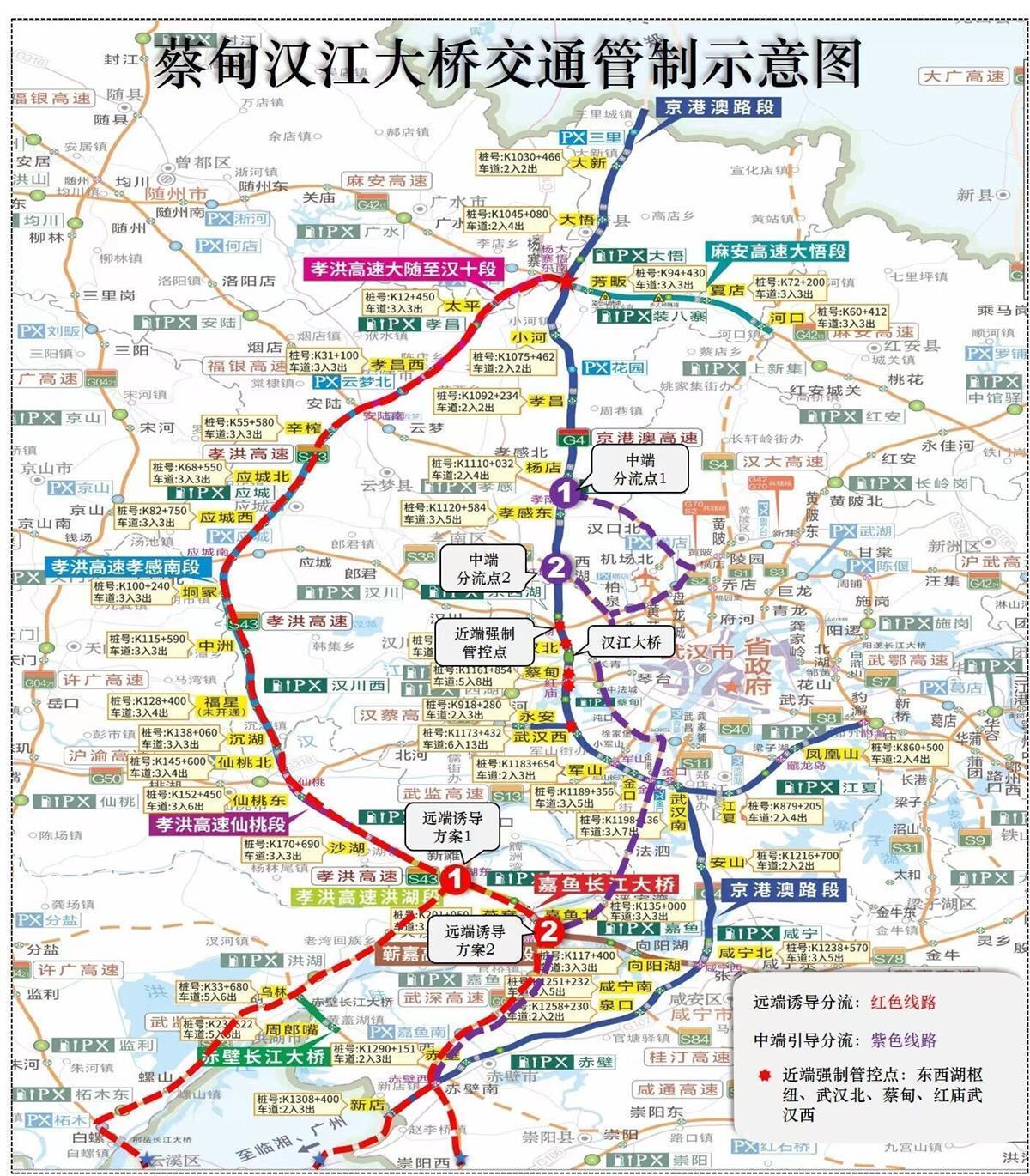 交通管制措施:京港澳高速公路(G4)武汉北互通至蔡甸红庙枢纽互通双向路段禁止货车通行,交通管制时间为一年,期间根据加固施工需要实行单向先后封闭各2个月。