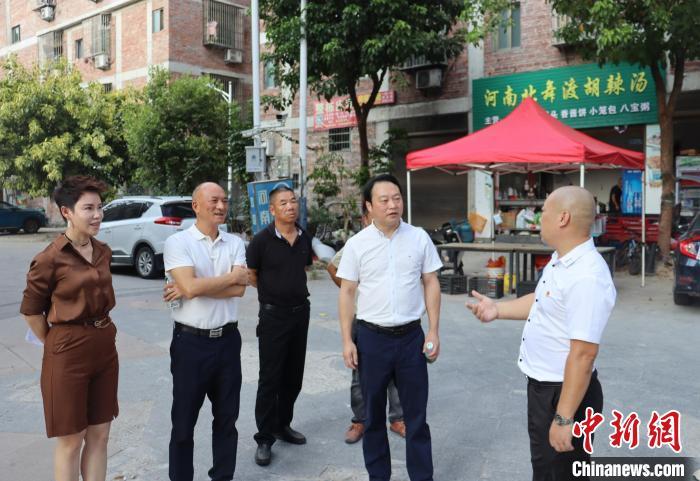 宁德市台港澳办主任郑铁军(右二)一行在外洋新村调研。 叶茂 摄