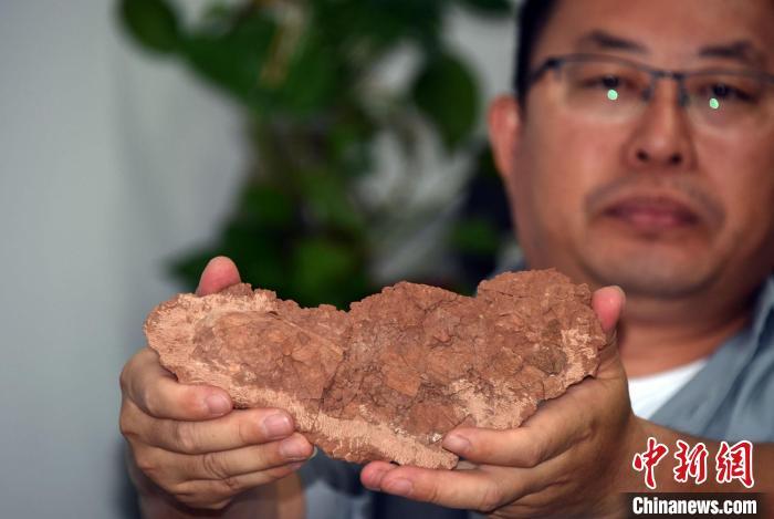 用于本次研究的、采自陕西山阳盆地的1件恐龙蛋化石标本。 中新社记者 孙自法 摄