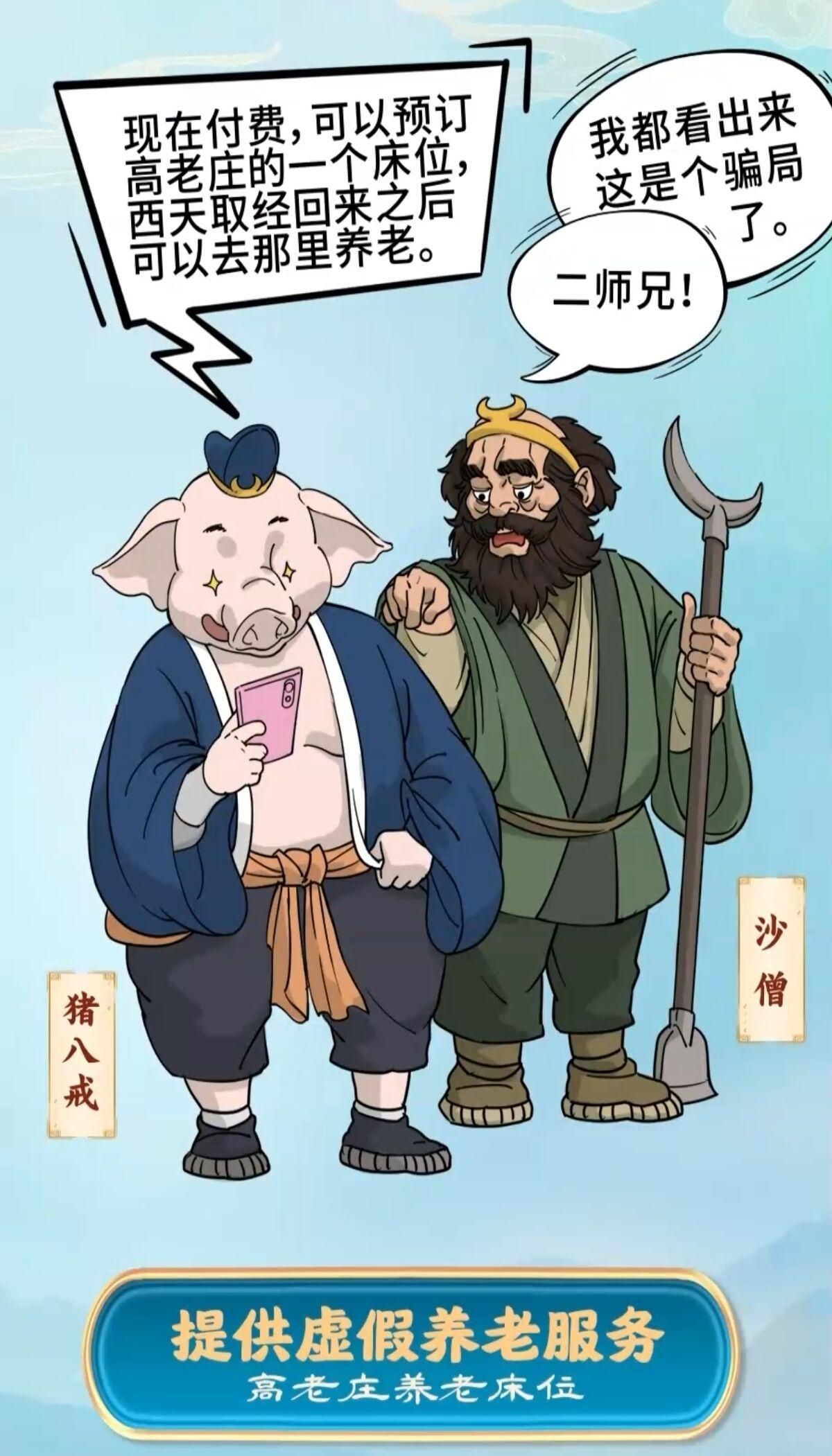 楚天都市报极目新闻讯(记者黄忠 通讯员李蔚红)八戒收到“高老庄养老院”广告,工作人员推销说,只要现在交钱,取经回来就可享受优质服务,这养老床位,他买还是不买?