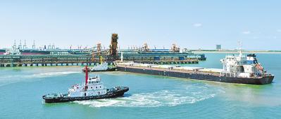载满煤炭的货轮驶离黄骅港煤炭港区。 河北日报通讯员 苑立伟摄