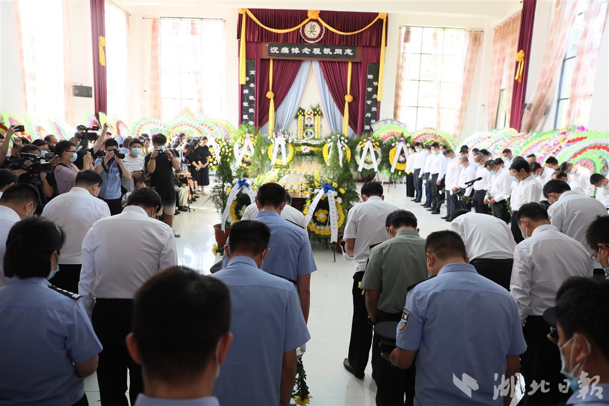 9月19日上午,程凯的遗体告别仪式在黄梅县殡仪馆举行。告别仪式上,同为警察的程凯大哥程刚在老父亲面前跪地哭泣,他说:“这就是我们的使命。”