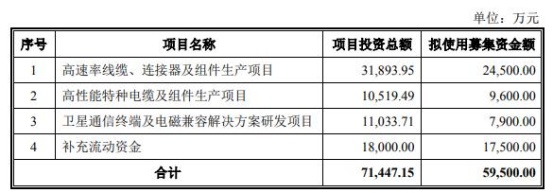 9月20日,金信诺发布2021年创业板向特定对象发行A股股票预案(三次修订稿)。本次发行募集资金总额不超过59500.00万元,在扣除相关发行费用后将全部用于高速率线缆、连接器及组件生产项目;高性能特种电缆及组件生产项目;卫星通信终端及电磁兼容解决方案研发项目;补充流动资金。