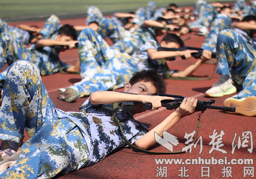 学生们一排排笔挺的身躯,军姿站立纹丝不动,任汗水肆意挥洒。下蹲、立正、稍息、敬礼、转身,每个动作都力求标准。
