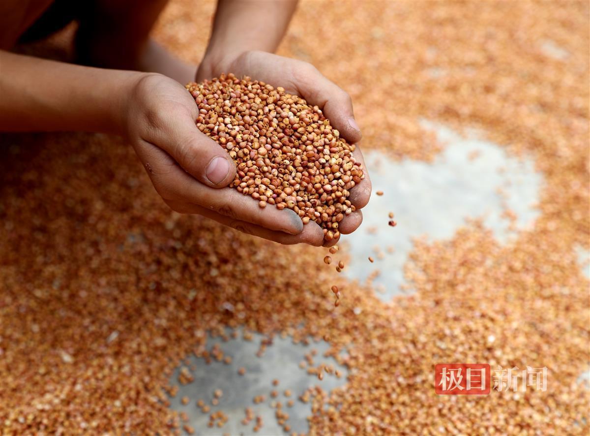 村民手捧高粱粒