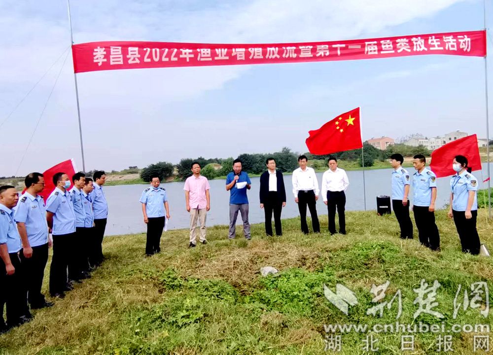 荆楚网(湖北日报网)讯(宋俊初、罗小红、陈军乔)9月23日,在孝昌花园镇澴水河漫水桥段,由孝县委、县人民政府主办的2022年鱼类人工增殖放流活动在此举行。