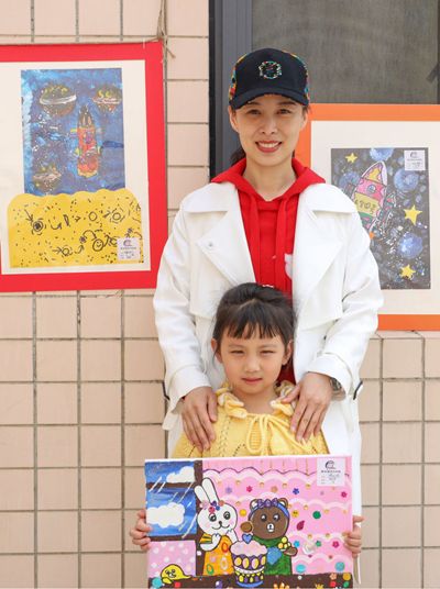 王亚平与女儿参加画展。