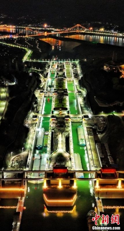 三峡南线船闸完成检修任务后恢复通航,实现双向通行。两坝船闸30项机、电、水主体工程项目均提前完成,且满足安全、质量、进度和环保要求。中新社发 周星亮 摄