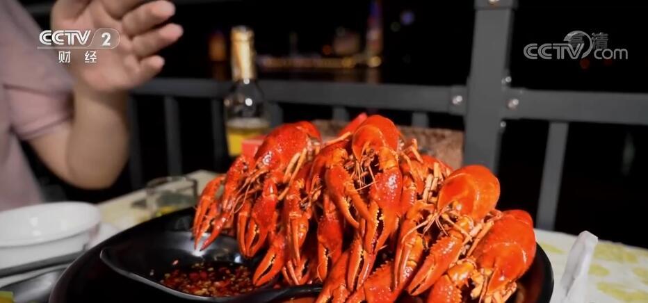 记者 傅蕾:现在是晚上11点多,这条400多米的长街依然是灯火通明,上千个座位座无虚席,璀璨灯火和夜市里的小龙虾、啤酒组成了最热闹也最抚凡人心的人间烟火气。 今天我们也准备了一桌美食跟大家一起分享。我们来看看这道招牌的油爆虾,配上特调的酸辣酱与秘制酱,两款不一样的点缀为原汁原味的虾肉添上不同的口味。