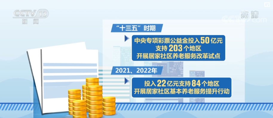 2012—2021年,中央财政累计投入359亿元支持养老服务设施建设。“十三五”时期,中央专项彩票公益金投入50亿元支持203个地区开展居家社区养老服务改革试点;2021、2022年,投入22亿元支持84个地区开展居家社区基本养老服务提升行动。截至目前,全国各类养老服务机构和设施为36万个、床位812.6万张,床位数是2012年的近2倍,养老机构数量翻了三番。
