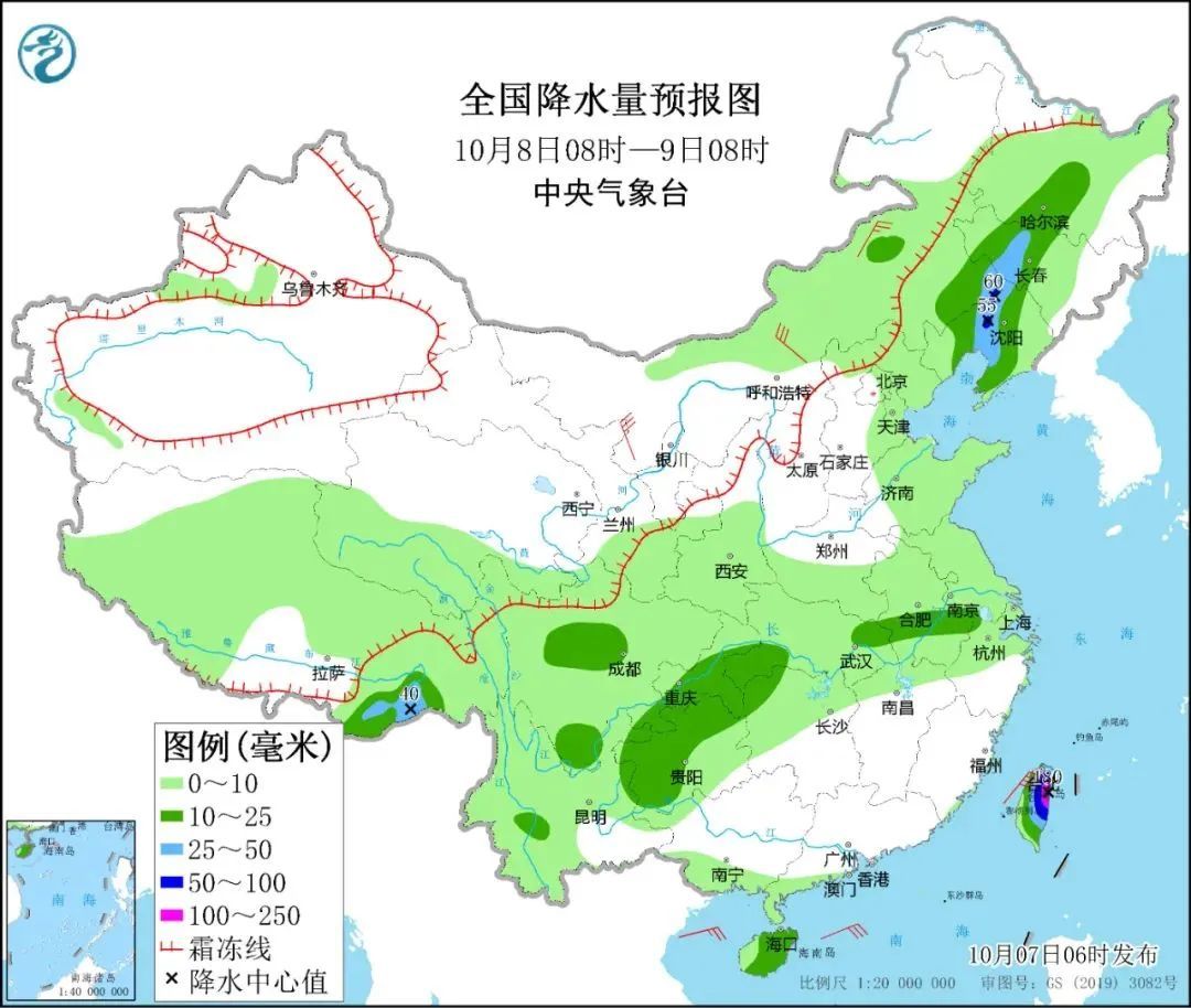 明天,内蒙古东南部、黑龙江中部、吉林西部、辽宁、安徽中南部、湖北西南部、川西高原北部、四川南部、重庆、贵州中西部、西藏东南部以及海南岛、台湾岛大部等地部分地区有中到大雨,其中,内蒙古东南部、辽宁中北部、台湾岛东部等地局地有暴雨或大暴雨(100~180毫米)。