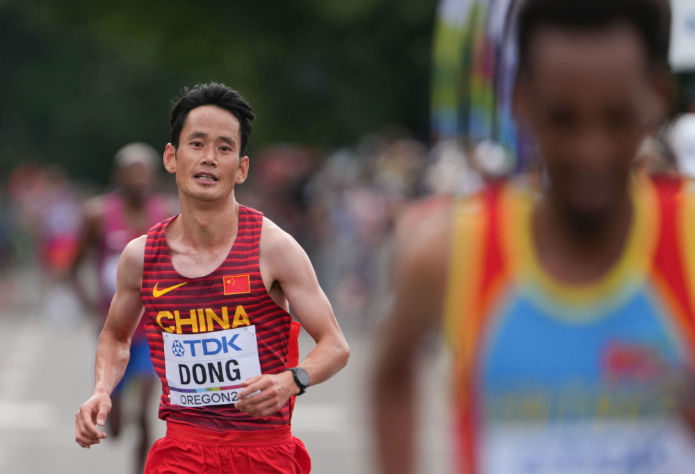 中国选手董国建在2022年世界田径锦标赛男子马拉松比赛中。新华社记者吴晓凌摄