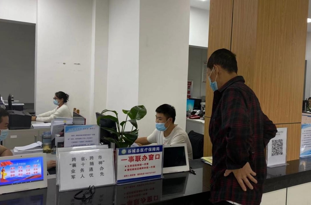 同济医院的工作人员了解到毕先生还参加了2022年城乡居民医保后,建议毕先生回到谷城开通城乡居民医保,就可以报销医疗费。9月27日下午,毕先生匆匆赶回谷城,来到县行政服务中心医保窗口办理开通业务。
