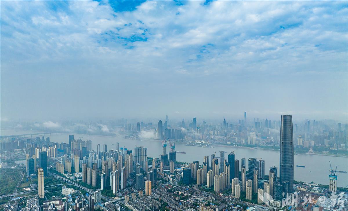 10月9日上午,经历多日阴雨天气的武汉迎来雨后初霁,高楼、桥梁、湖泊在云海中若隐若现,宛若美丽画卷。