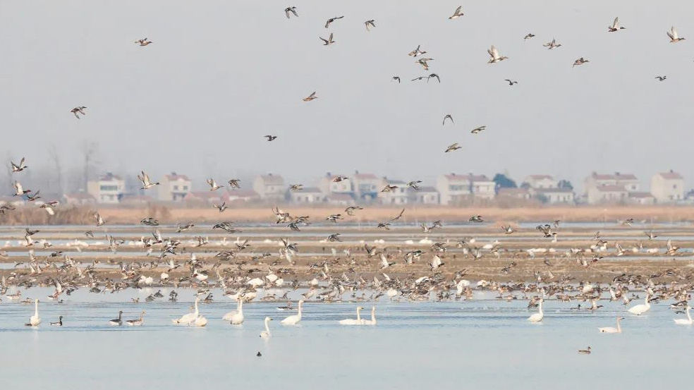 去年冬天,汈汊湖火了。近10万只越冬候鸟来到这里,在湖面和滩涂上嬉戏、觅食。水天同碧、万鸟翔集的绝美视频,不仅上了中央电视台,还在网上被疯转,网友们都说“真想到现场看看”。