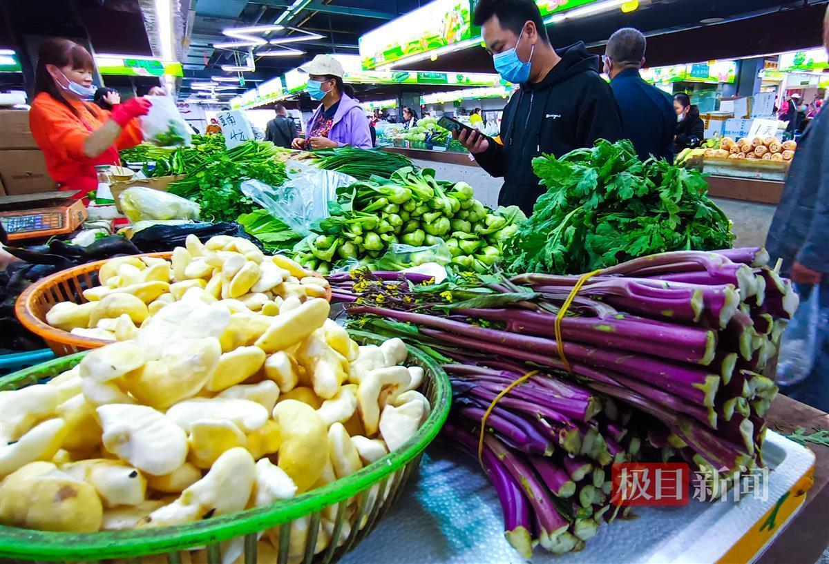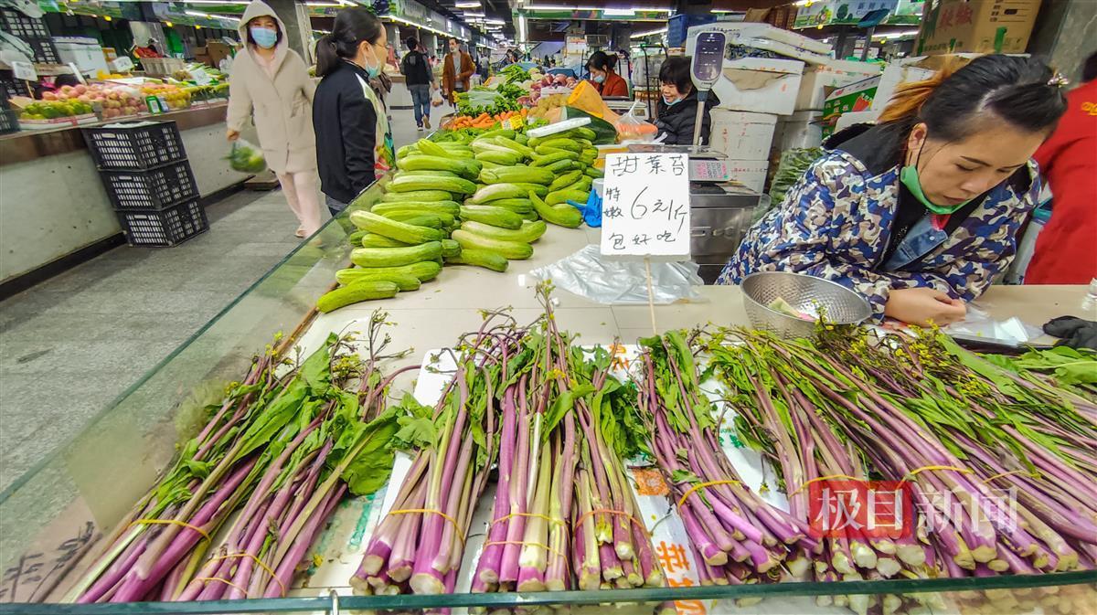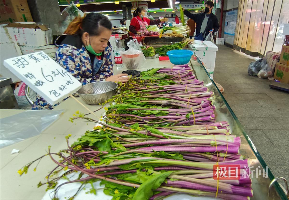 在光谷立信生鲜市场内,有少量红菜薹出售