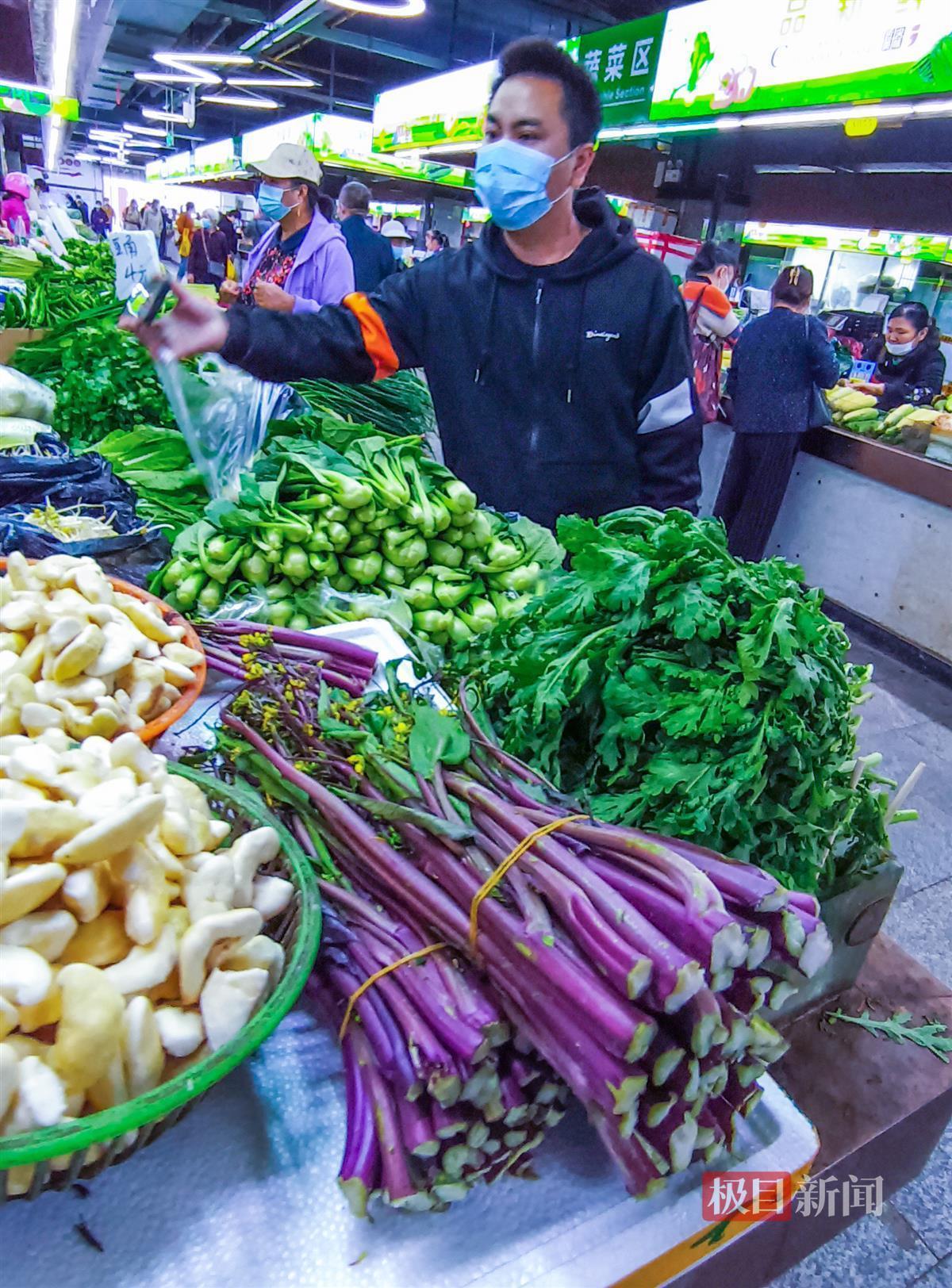 10月12日,武汉人很喜欢的一道秋冬季时令蔬菜:红菜薹,开始在三镇生鲜市场中,少量上市销售。虽然这个季节的菜薹没有霜打过后的甜,但还是有不少人购买尝鲜。