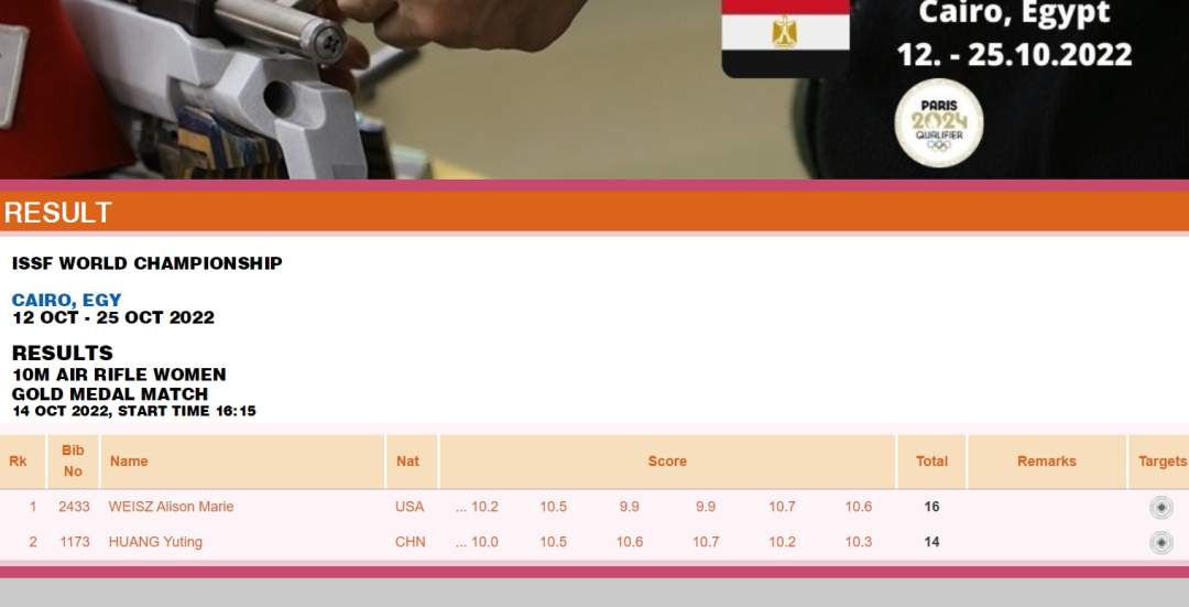 国际射击运动联合会官网消息,在埃及开罗当地时间14日举行的射击(步手枪)世锦赛比赛中,年仅16岁的中国选手黄雨婷在女子10米气步枪项目摘银,为中国队又拿到1个巴黎奥运会参赛席位。