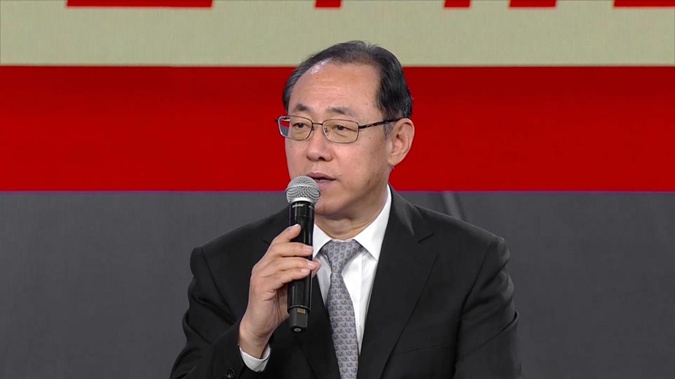 中国国新党委书记、董事长周渝波在访谈中。 人民网 许峥摄