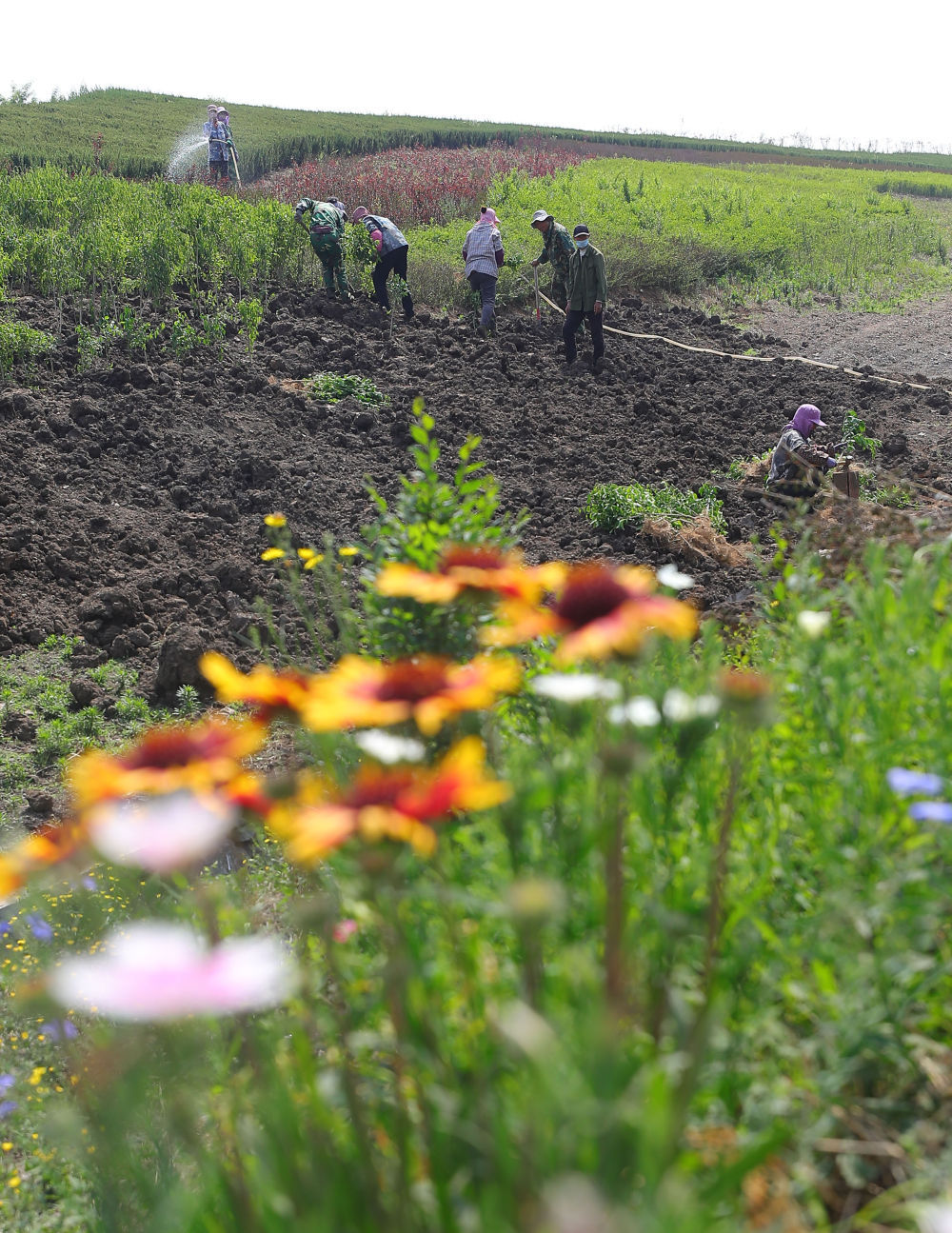 2022年6月2日,工人在辽宁抚顺西露天矿内植树。新华社记者 杨青 摄