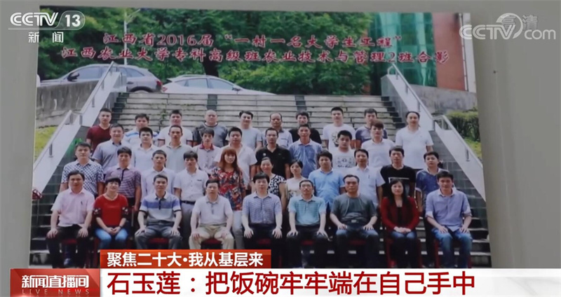 石玉莲来自江西唯一的多民族乡,是峡江县金坪民族乡南下村党支部副书记。2012年,38岁的她报名参加江西推行的“一村一名大学生”工程,来到江西农大学习三年,并顺利从农业技术与管理专业函授毕业。