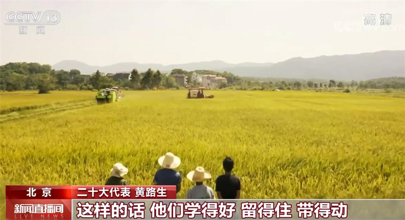 二十大代表 黄路生:乡村振兴里面很重要的一点就是产业振兴和组织振兴。针对他们在农村里面的产业需求,设置相应的课程,让他们到(江西)农业大学来学习,这样,他们学得好、留得住、带得动。现在我们大概已经有两万多大学生了,就是一个村已经有一个大学生。