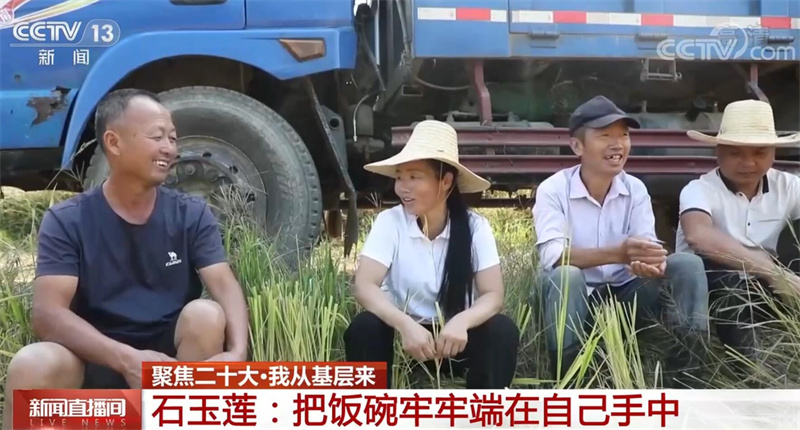 二十大代表 石玉莲:在我之前,我基本上不知道身边有种粮大户,在我之后,种几百亩、一千多亩、几千亩的(种粮大户)就如雨后春笋一样,到处都是了。这个便利、机械化和科技的发展,这十年的变化,尤其是最近这五年发生了一个根本的变化。