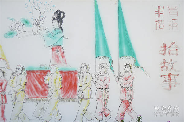 “抬故事”彩绘文化墙。记者周洪阳 摄
