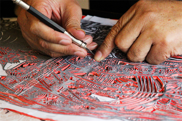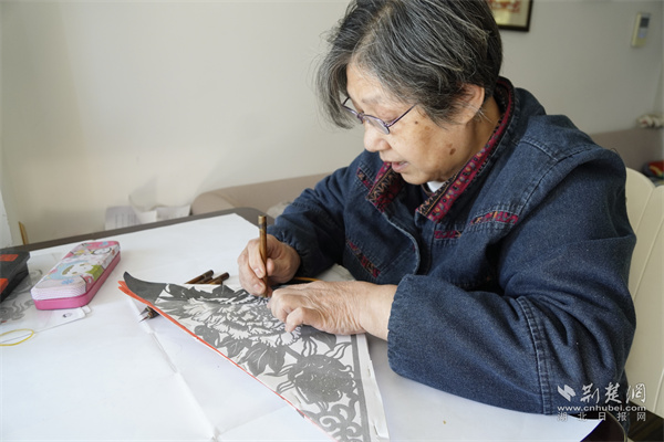 正在进行雕花剪纸。通讯员胡小华 供图