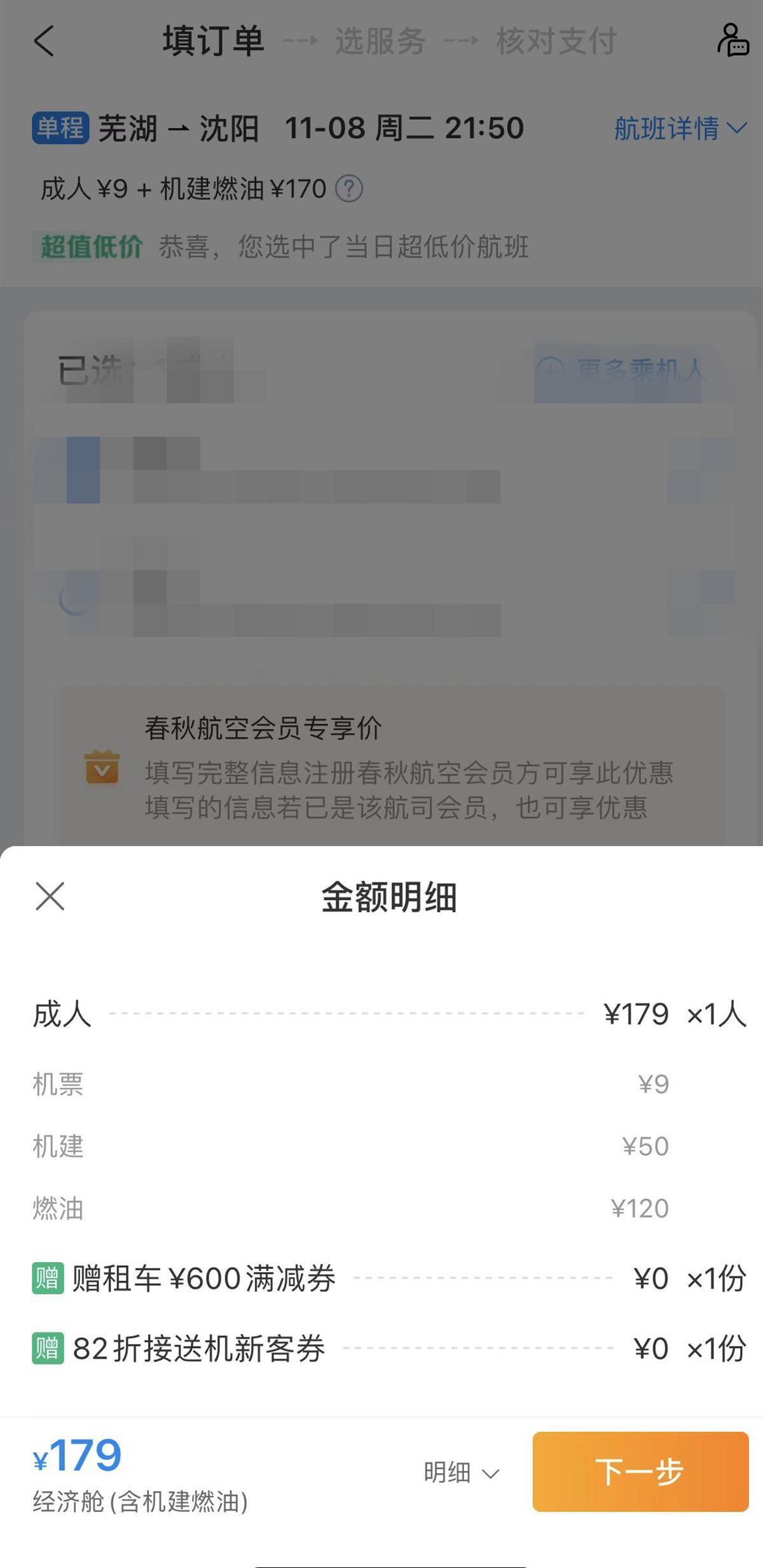 以芜湖至沈阳为例,只需另支付170元机建燃油费