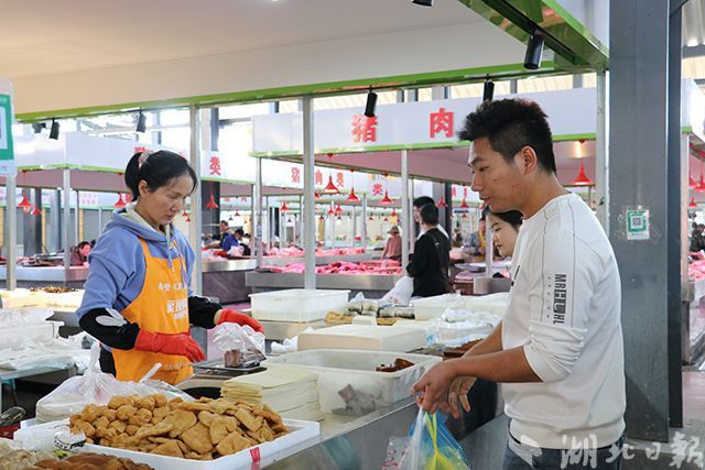 11月2日,记者走进赤壁市金谷路农贸大市场,只见市场通道内宽敞明亮,摊位整齐有序,环境干净整洁,蔬菜、水果等各类区域划分有序,商户经营规范。