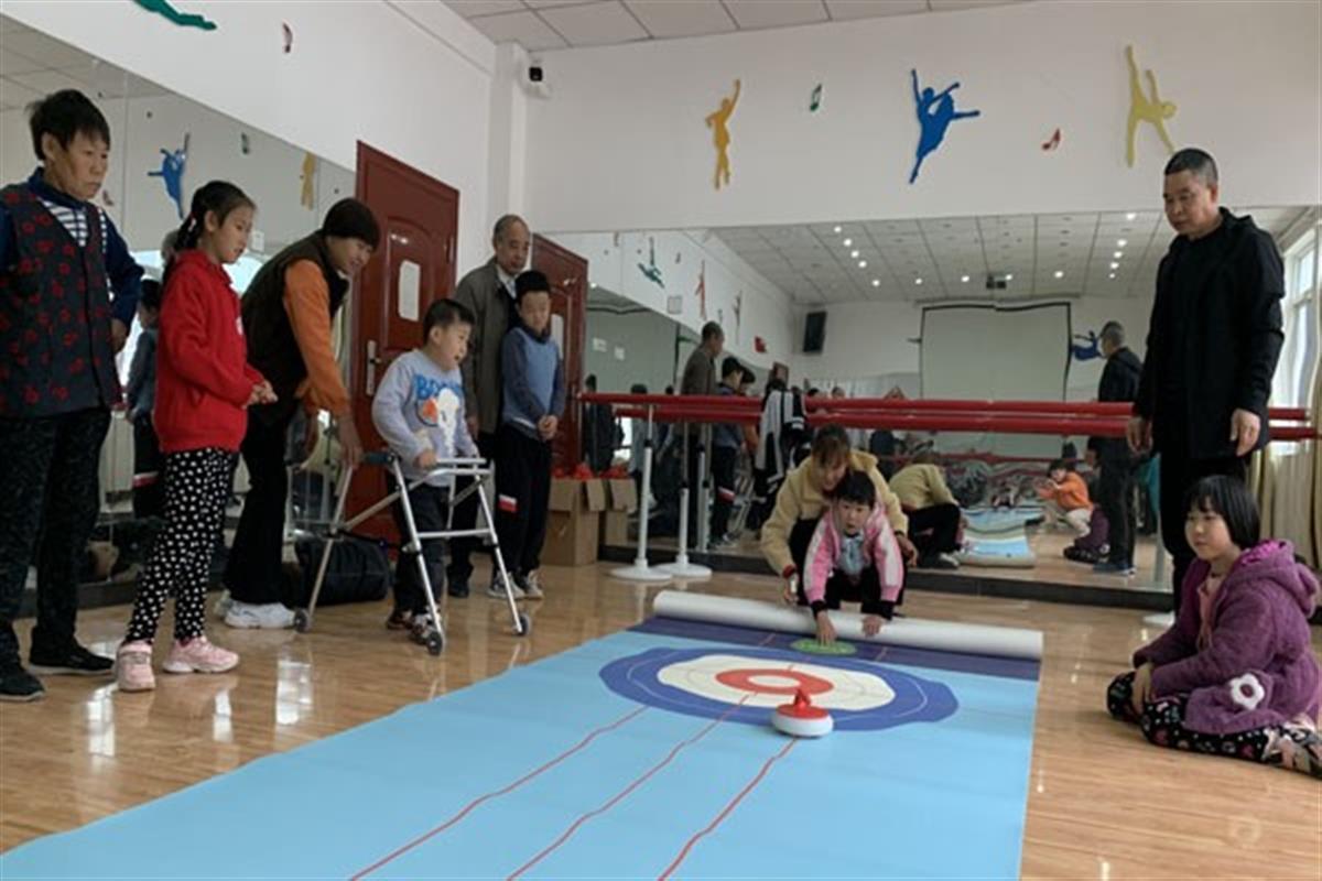 11月4日,兴山特校运动与保健教师李军堂正在上课。教一群站不稳、坐不住、看不准的孩子学习冰壶运动。孩子们在李老师的耐心讲解、指导下,快乐地学习冰壶的握壶方法、加转方法、出手姿势和投壶姿势。尽管动作还不完美,但大家学得投入,玩得开心,课堂不时爆发出笑声和加油声。