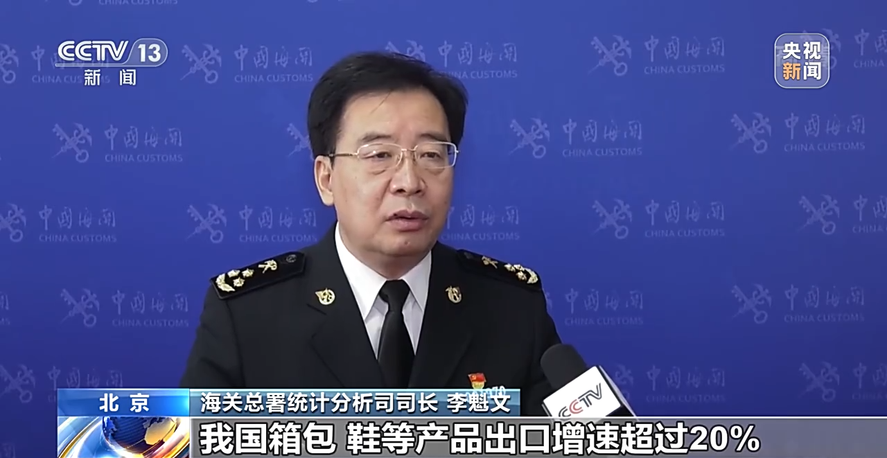 海关总署统计分析司司长 李魁文:前10个月,我国箱包、鞋等产品出口增速超过20%,传统优势明显。同期,电动载人汽车出口翻倍,锂电池、太阳能电池等机电产品出口增长八成左右,这在展现强大产品国际竞争力的同时,也体现了我国出口的优化升级。