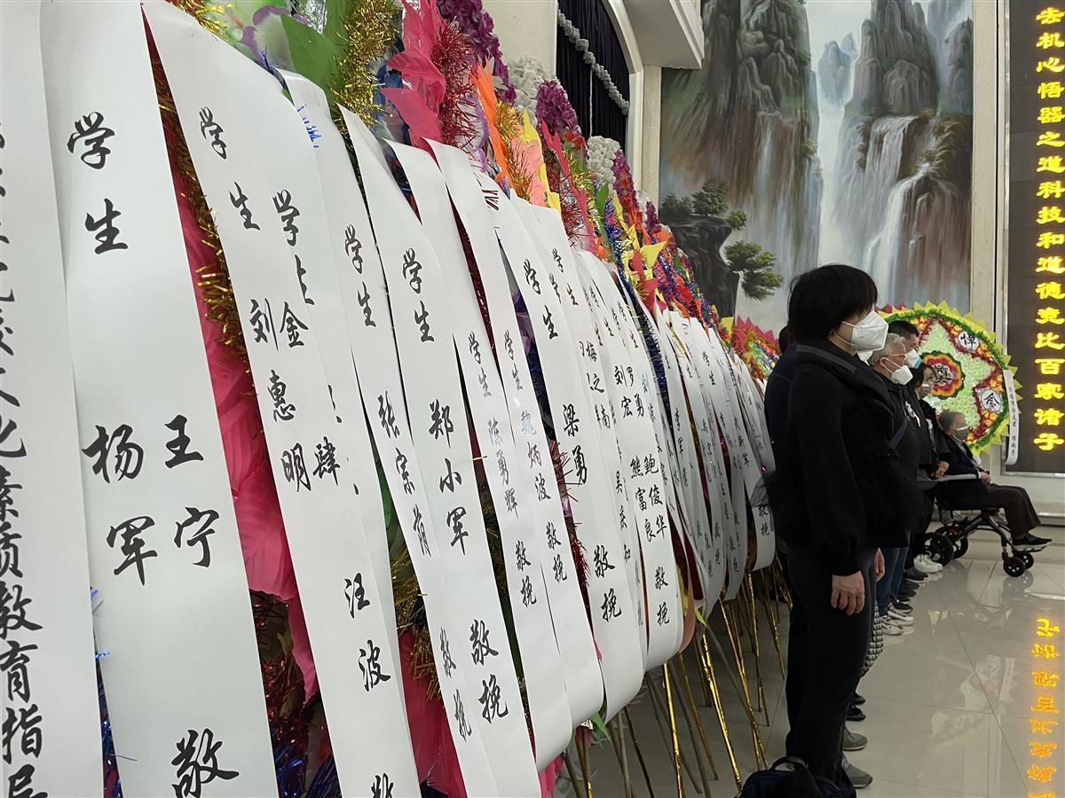 胡友民不能忘记老师常挂在嘴边的三句话:真心关爱他人、尊重他人、承认他人的劳动。“老师把名利荣誉看得非常淡,我们都受他的影响,团队非常团结,人人祛除‘官气’。”他说,“你看这些花圈的落款,就是简单的学生二字,不管他是多大的‘家’、多大的‘腕’。我们都要向老师学习,简单做人,认真做事。”