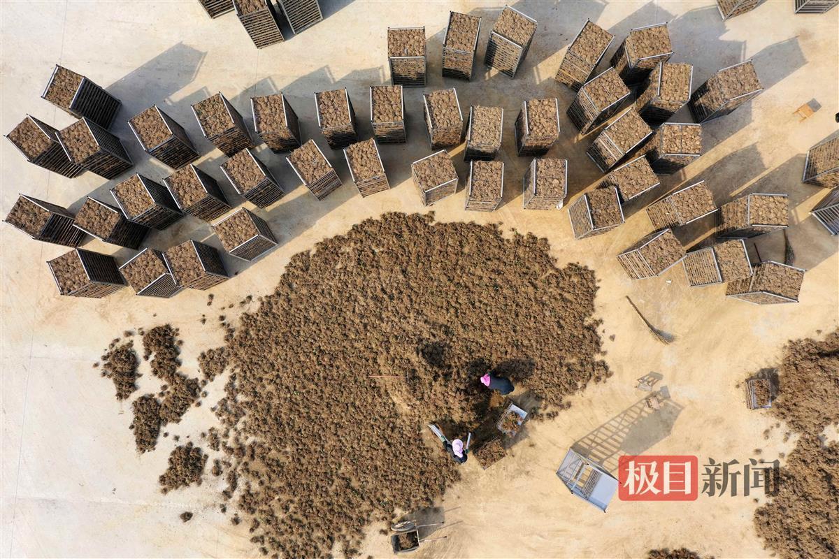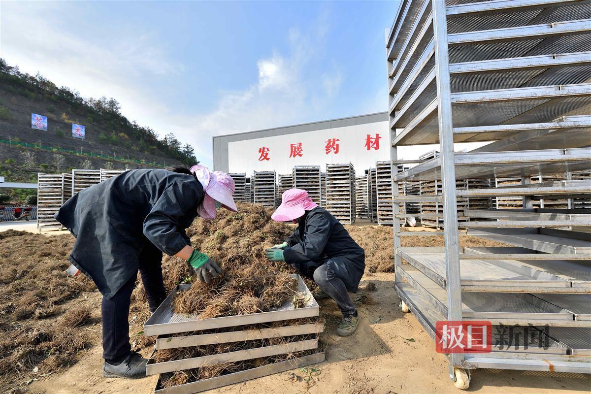 11月9日,湖北襄阳市保康县马桥镇横溪村药材产业园里,村民们进进出出一派繁忙。村民种植的苍术喜获丰收,当地药农抢抓晴好天气采挖、分拣、晾晒、烘烤,确保中药材丰产增收。