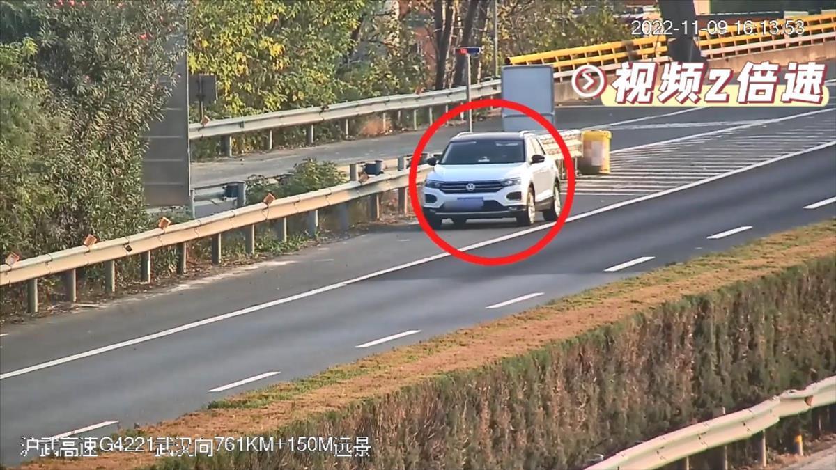 白色小车正在倒车(视频监控截图)监控视频显示,11月9日16时13分,这辆白色小车发现驶过了匝道口,直接停车,接着倒车,压越导流实线拐进匝道驶离。