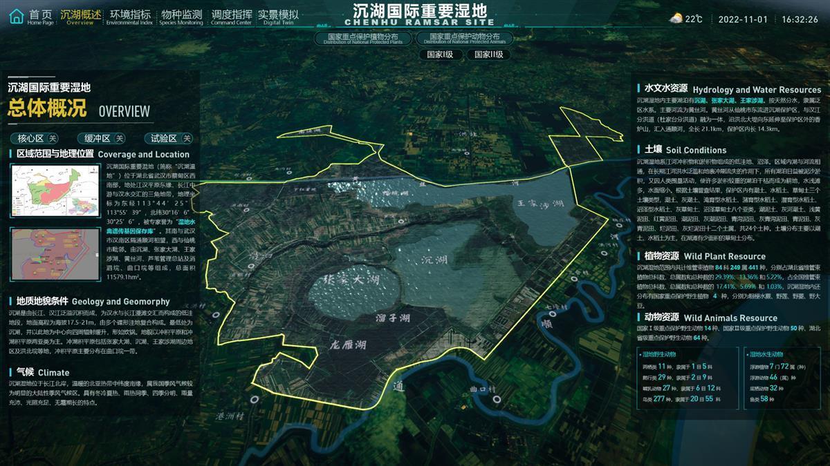 沉湖湿地总面积达11579.1公顷,每到秋冬季节,来此越冬的候鸟数以万计。新来了哪些“客人”,它们偏爱在哪些区域活动,又在何时告别?要采集这些信息,光靠观鸟者和监测人员,难免疏漏。去年7月,湖北首个生物多样性智慧监测系统在沉湖湿地投入试运行,经过一年多的逐步完善,可实现实时监测、巡护管理和实景模拟等功能。系统24小时在线监测并进行数据采集分析,令保护沉湖湿地更有“数”。