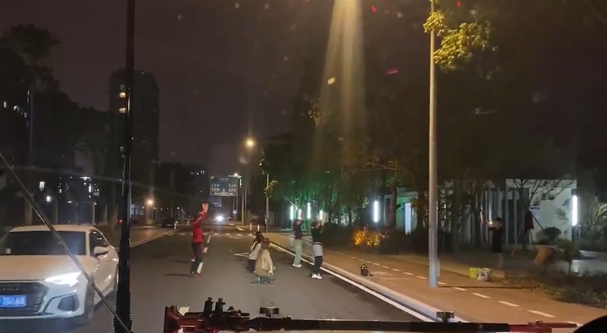 来自江苏宜兴的贺先生介绍,11月11日晚8时许,他开车在一处机动车道正常行驶,突然看到前方马路上有几名女子排成了三排,占据了双车道的其中一条车道,正在跟随音乐跳舞,旁边还有一人正在给她们拍照。