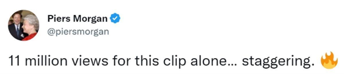 皮尔斯·摩根在社交平台上称,这次访谈的预告片播放已过千万(皮尔斯·摩根社交平台截图)
