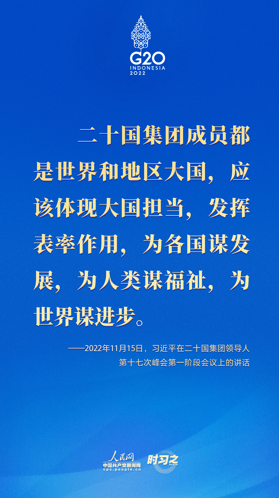 当地时间11月15日,二十国集团领导人第十七次峰会在印度尼西亚巴厘岛举行。国家主席习近平出席并发表题为《共迎时代挑战 共建美好未来》的重要讲话。