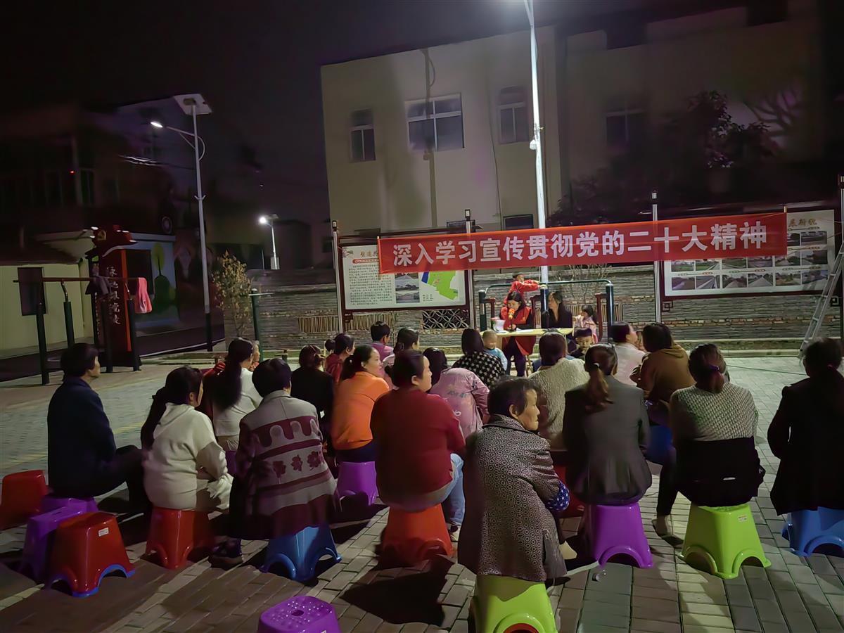 崇阳县依托村湾夜话,利用晚饭后的时间组织妇女板凳会,学习党的二十大精神,还围绕群众关心关注的农民、农业、农村问题,向村民讲解了报告中关于乡村振兴的相关论述;共商发展良策……一时间,说唱会、板凳会、读书会、乡村夜话,在全市妇女群众中广泛铺开。