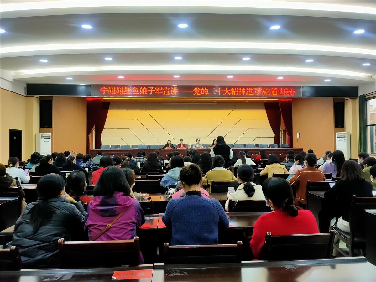 在各级妇联微信公众号等网络媒体推出“宁姐姐红色娘子军宣讲”栏目,以视频接力的形式组织各条战线妇女先进典型、各级妇联干部、妇女群众代表,开展“热议党的二十大精神”“二十大金句我来读”“最美奋斗故事宣讲”活动。