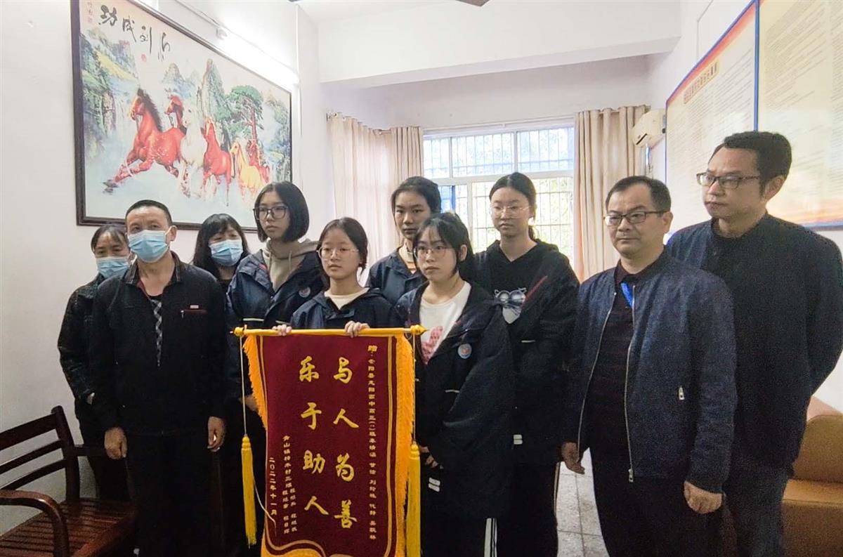 此前,楚天都市报极目新闻客户端一篇题为《找到了!视频中扶救倒地老人的学生原来是她们》的报道,在湖北咸宁市崇阳县引发广泛关注,报道引述了当地媒体关注5位学生救扶倒地老人的事迹。而在找到这“五朵金花”后,倒地老人的家人第一时间来到她们所在的崇阳县龙阳高中三(8)班,当面向她们致谢并赠送锦旗。
