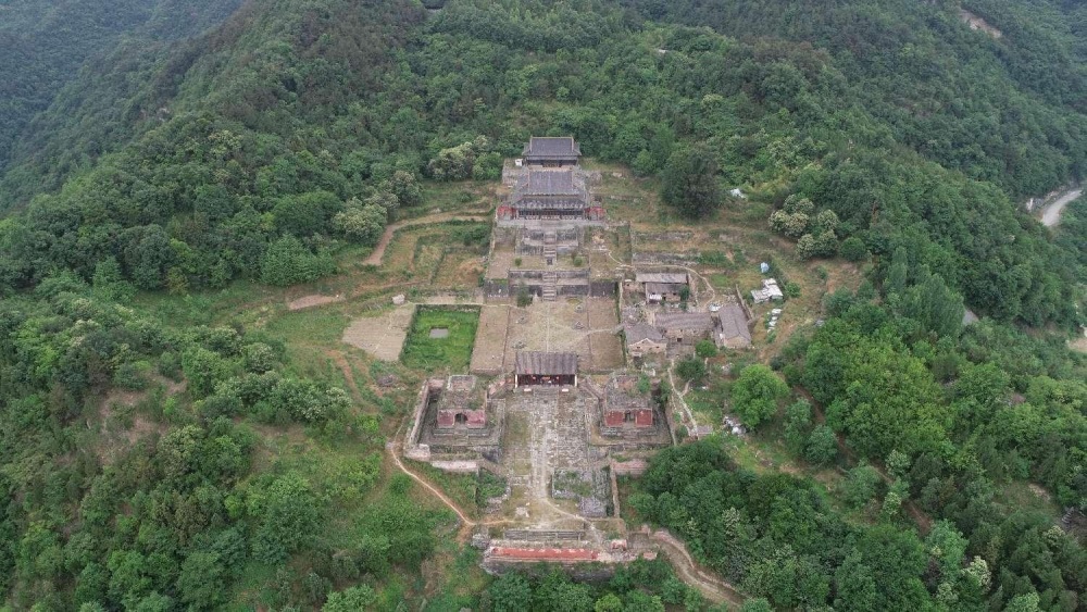 五龙宫遗址远景航拍(东—西)。(湖北省文物考古研究院供图)
