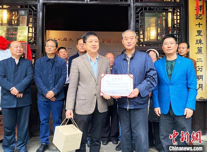 扬州博物馆馆长束家平接受捐赠并颁发证书。 崔佳明 摄