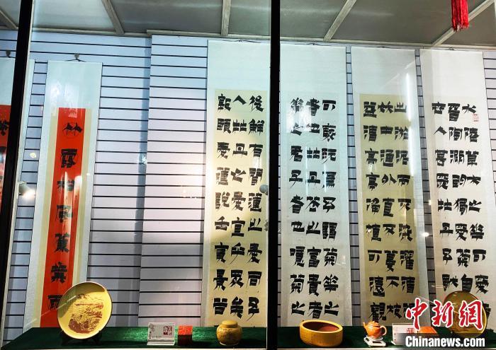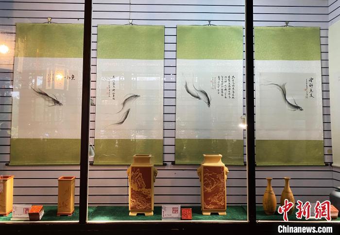 展出海派紫砂雕刻艺术、漆书、鱼系列书画等近百件作品。 崔佳明 摄