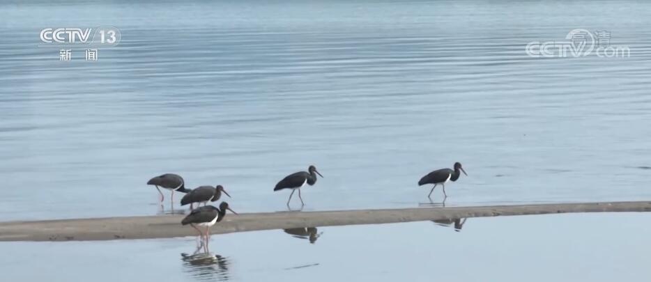 据了解,黑鹳对于栖息地很挑剔,要求水体食物必须丰富,水质必须清澈。它们的到来是长江江域生态改善的生动见证。