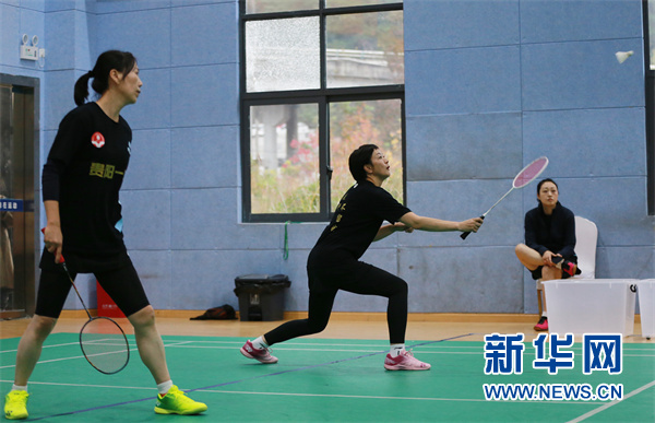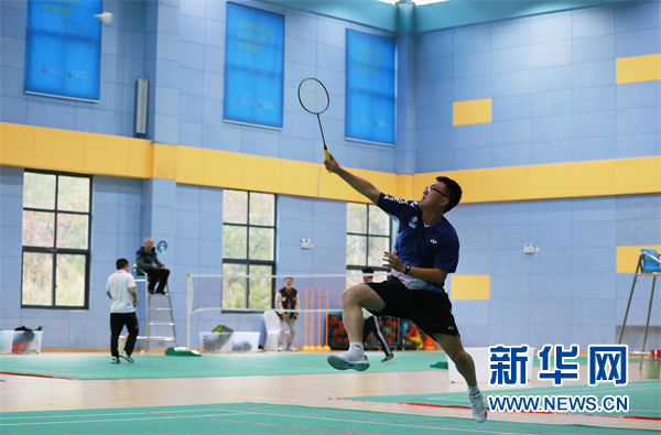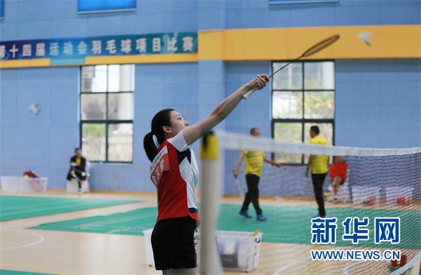 11月21日,运动员在贵阳市第十四届运动会羽毛球项目比赛中。新华网 卢志佳 摄