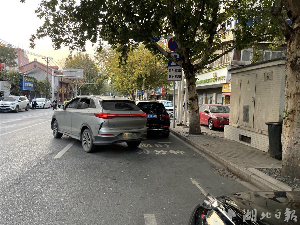 湖北日报全媒记者注意到,在限时泊位旁边,立着停车标识牌,白底黑字印着“限时停车 超时抓拍”,车位路面上也有“限时30分钟”的提示。武汉市公安局交管局秩序管理大队民警李靖介绍,限时泊位不收停车费,但是超过限定的停车时间,车辆将被视作违停进行处罚。