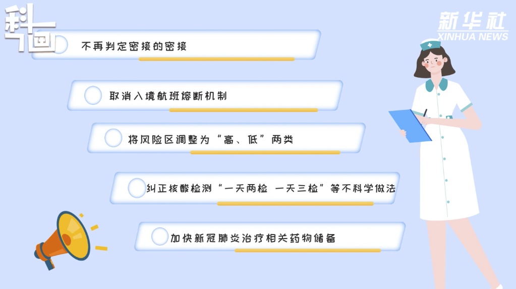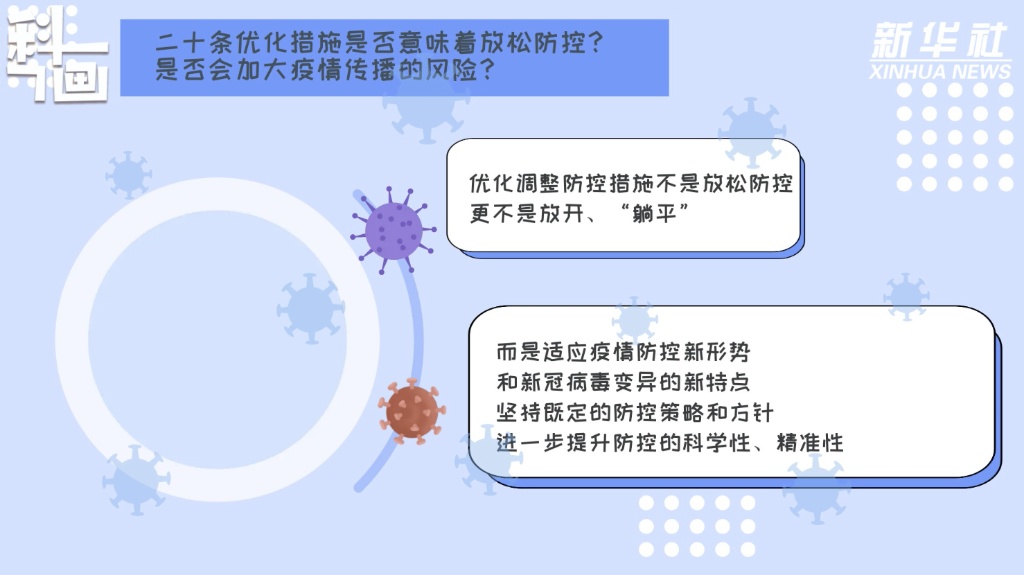 不再判定密接的密接,取消入境航班熔断机制,将风险区调整为“高、低”两类,纠正核酸检测“一天两检”“一天三检”等不科学做法,加快新冠肺炎治疗相关药物储备……二十条优化措施公布后,引起社会广泛关注。聚焦落实过程中公众关注的热点问题,国务院联防联控机制有关专家作出权威回应。